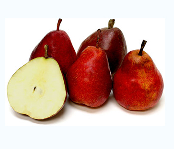 Red Anjou pears have a slight egg shape, round at the base with a neck that grows thinner towards the stem. The skin of a Red Anjou pear can be as dark as maroon, a rust-colored red or a lighter, crimson red with occasional striations. Red Anjou pears have a soft, juicy flesh with a mild flavour. The flavour peaks around 2 months after harvest.